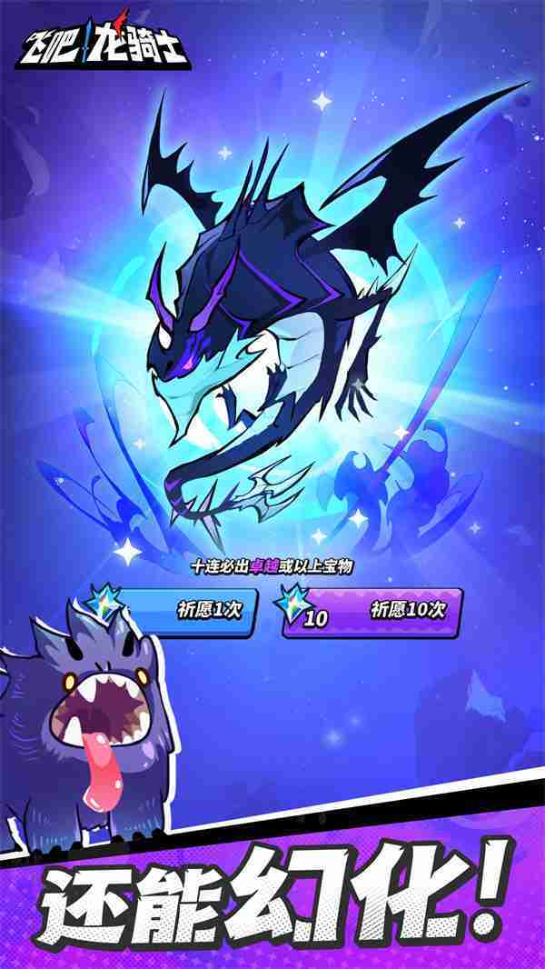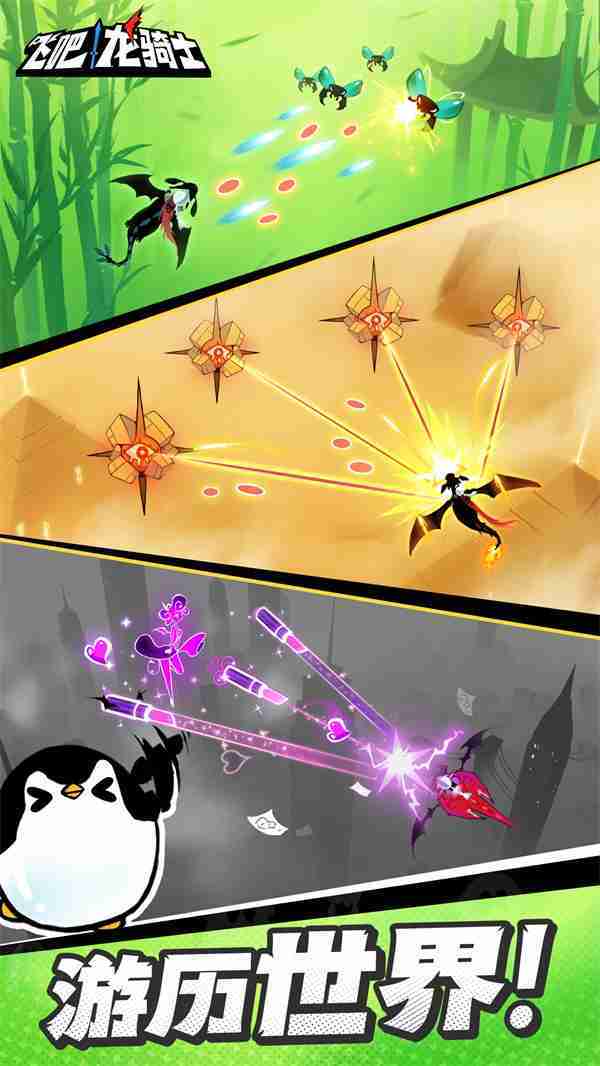 《飞吧龙骑士》是一款集合了飞行弹幕射击、、Roguelike要素和挂机养成的休闲手游,,极具创意的吞食子弹反击玩法,,,突破传统飞行射击的刻板限制,,带来了独特的爽快清屏体验。。。