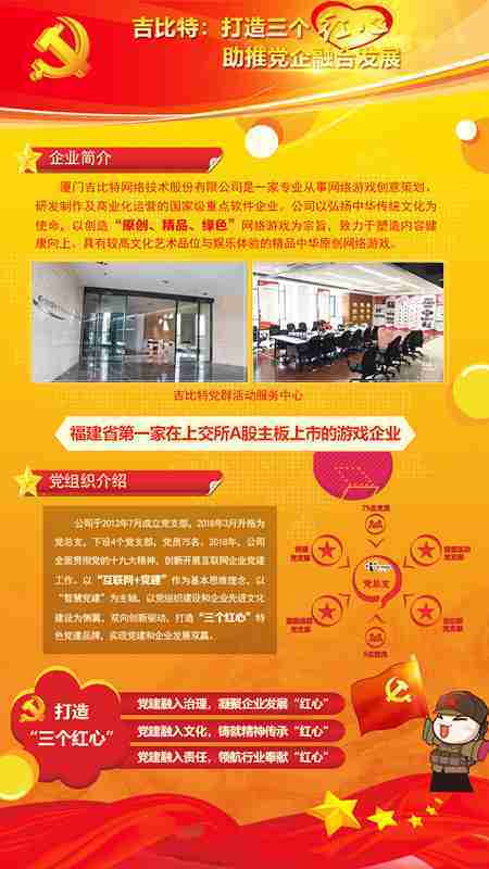 未来公司将全面学习贯彻习近平新时代中国特色社会主义思想和党的十九大精神,,持续强化“互联网+党建”的思维理念,,,,以“智慧党建”为主轴,,,以党组织建设和企业先进文化建设为侧翼,,,双向创新驱动,,,引领有信仰、、有情怀、、有价值的新时代游戏研发运营,,,,在不断发展壮大的同时,,,成为行业的“红色标杆”,,,实现党建和企业发展双赢。。。
