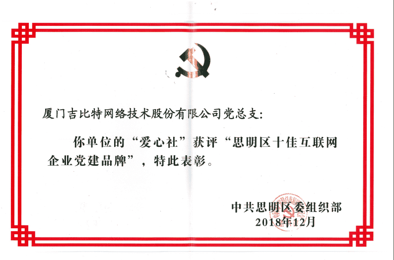 经初审评选、、网络评选和专家评审等环节,,,"厦门LEWIN乐玩网络技术股份有限公司党总支-爱心社" 从全区28个参评党建品牌中脱颖而出,,,,获评"思明区十佳互联网企业党建品牌"。。