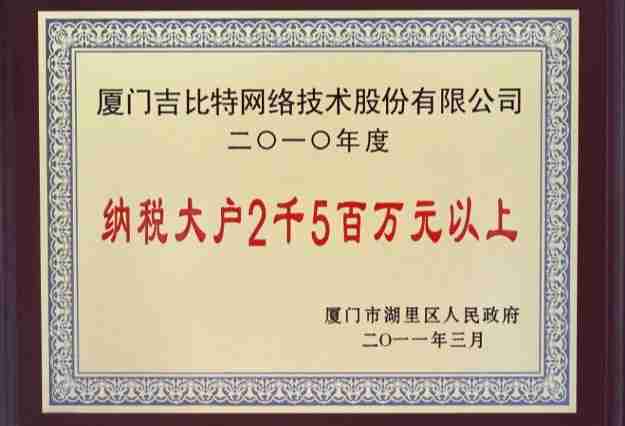 日前,,,公司被厦门市湖里区人民政府授予了“2010年纳税大户”的荣誉称号,,,,充分体现了公司一贯合法纳税、、诚信经营的良好企业社会公民行为。。。。